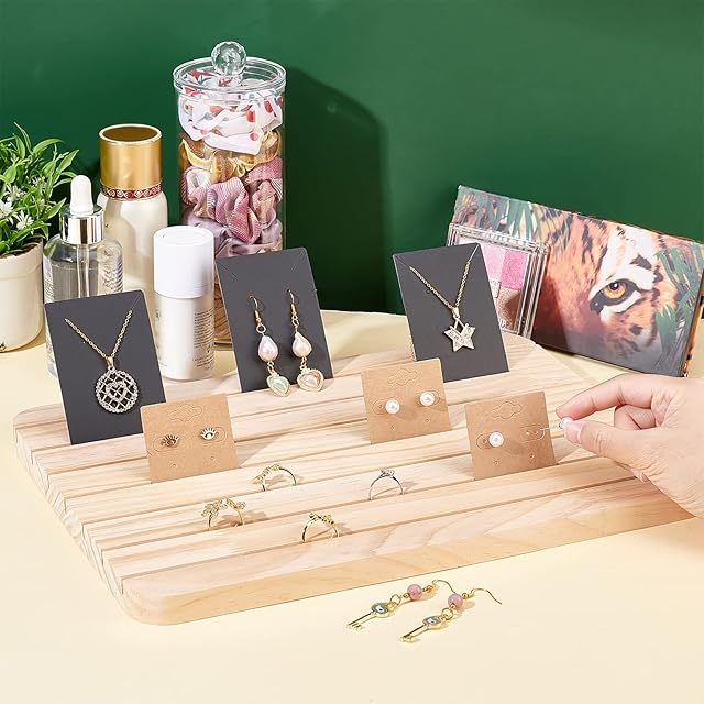 PH PandaHall ジュエリー収納 木製ディスプレイスタンド アクセサリースタンド カード展示 収納ラック 首飾り 指輪 イヤリングホルダー 大容量 ブレスレット ショップ陳列に最適 3x23cm