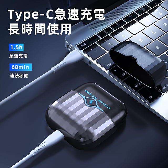 【Type-C急速充電・長時間使用】国際標準のType-C急速充電ポートを備えており、パソコン、ACアダプター、モバイルバッテリー、車載充電器などでどこでも簡単に充電可能です。出張、旅行、オフィスでも電力がなくなる心配はありません。1.5時間で充電でき、60分間使用可能。