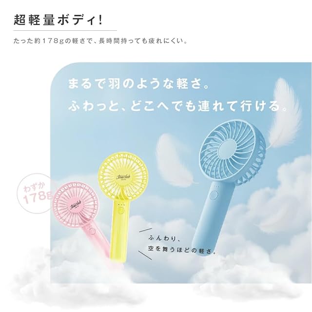 商品名:【2025年モデル】フランフランフレハンディファン ホワイト 携帯扇風機 3段階風量調整 充電池 USB充電 Type-C 対応 (オーロライエロー)