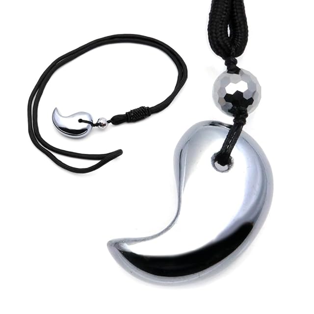 [GOLD STONE] テラヘルツ鉱石 勾玉 紐 ネックレス 8mm玉付き 健康 お守り Terahertz パワーストーン 天然石 ペンダント