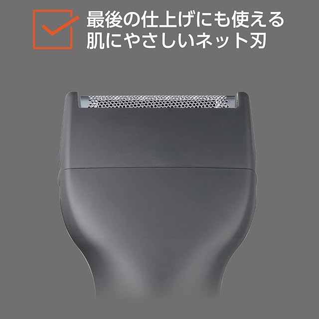 肌に直接可動刃が当たらないネット刃で、肌にやさしく短い毛を刈り込むことができます。最後の仕上げにも使えます。