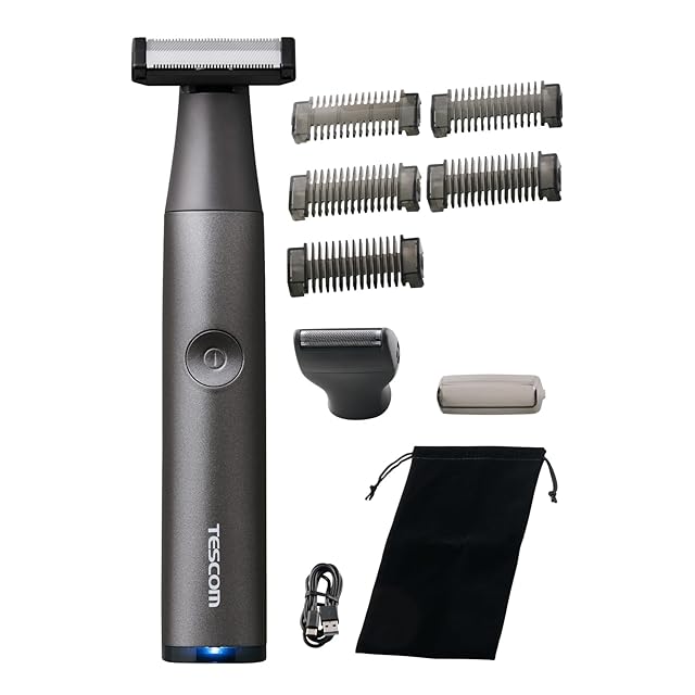 <b>【 仕様 】</b><br>■電源方式:充電・交流式<br>■電源:入力 AC100V-240V 50/60Hz 、出力:DC5.0V 1.0A<br>■消費電力:7W以下(充電時)<br>■充電時間:約90分<br>■使用時間:約45分<br>■使用電池:リチウムイオン電池(600mAh)<br>■刈り高さ:1mm/2mm/3mm/4mm/5mm<br>■スイッチ:ロック付スイッチ ON/OFF<br>■充電残量表示:○<br>■外形寸法:幅約40mm×奥行約30mm×高さ約158mm(本体のみ、ダブルT字刃装着時)、幅約38mm×奥行約29mm×高さ約155mm(本体のみ、ネット刃装着時)<br>■質量:93g(本体のみ、ダブルT字装着時)、94g(本体のみ、ネット刃装着時)<br>■主材料:本体:ABS、刃:SUS<br>■カラー:ブラック<br>■電源ケーブル長:本体側:USB Type-C(TM) 電源側:USB-A<br>■コード長:1.0m<br>■防水性能:IPX7<br>■水洗い:○<br>■海外使用:○<br>■アタッチメント:ダブルT字刃、ネット刃<br>■付属品:ネット刃用キャップ、トリムコーム(1mm/2mm/3mm/4mm/5mm各1個)、電源ケーブル、ポーチ、掃除用ブラシ<br>■パーツ:ダブルT字刃(TA034106)、ネット刃(TA034113)、コームセット(TA034120)、ポーチ(TA034144)、電源ケーブル(TA034137)、掃除用ブラシ(501455)<br>■期間:1年間<br><br><b>【 説明 】</b><br>■肌を傷つけにくい丸みのある刃先と、ボディラインに合わせて角度が変わる可動ヘッドを採用。肌をいたわるこだわりの設計で、VIOなどデリケートな部位にも安心して使えます。<br>■アタッチメントで自然な仕上がりに。5つのトリムコームを付け替えて、全身の毛を好みの長さに調整できます。1mm単位で調整できるので、こだわりのヒゲデザインが可能。<br>■肌に直接可動刃が当たらないネット刃で、肌にやさしく短い毛を刈り込むことができます。最後の仕上げにも使えます。<br>■※I・Oゾーンのお手入れをするときは必ずトリムコームを使用してください。<br>■流水にも強いIPX7の防水設計。濡れた肌にも使えるので、入浴のついでにケアできます。<br>■※お風呂場など水気のある場所では、電源ケーブルを接続してのご使用はおやめください。(交流時)<br>■本体・刃・アタッチメントはまるごと水洗いでき、お手入れも簡単です。<br>■※故障の原因になりますので、水の中に入れて洗わないでください。<br>■カミソリ感覚で使える93gの軽量ボディ。握りやすい形状で、スムーズに使えます。<br>■どこでも使えるコードレスの便利さと、充電切れの心配がいらない安心感を両立した充電式・交流式両用モデルです。<br>■すぐに使える急速充電!ゼロから満充電までは約90分で充電できます。1回の満充電で約45分間使用することが可能です。<br>■※使用時間:最大9分×5回の使用が可能です。<br>■3色のLEDランプで、充電残量が一目で分かります。<br>■自立して置けるデザインで、場所を取らず、すっきり並べて片付けられます。アタッチメントをまとめて収納できるポーチ付き。旅行など持ち運びにも便利です。<br>■充電用のUSB Type-C(TM)ケーブルを付属しています。市販品のUSB Type-Cケーブルでの充電も可能です。<br>■※本製品にUSB AC充電器は付属していません。市販のケーブルを使用して充電する場合は別途ご用意ください。<br>■日本国内はもちろん、海外使用にも対応。100‐240Vの地域で使えます。<br><br><b>【商品に関するお問い合わせ】</b><br>ホームページよりご確認ください
