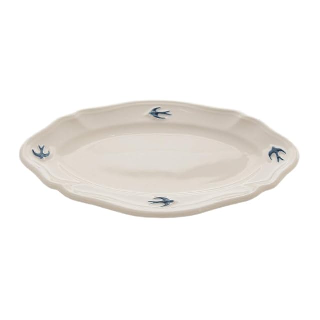 気持ち良さそうに空を飛んでいるツバメと、やわらかな曲線の縁取りが印象的なアーリーバードシリーズのプレート。<br>オーバルSサイズは銘々皿や、一人分のパンプレートや少量の前菜をもるのにおすすめのサイズです。<br><br>商品毎の色みバラツキが生じる事があります。<br>ツバメの絵柄はひとつひとつ手書きで施しています。<br>色の濃さやムラ、位置のズレなど個体差が生じます。