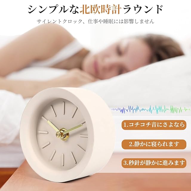 商品名:YH シンプルな北欧時計ラウンド工業用風セメント時計ベッドサイドミュート小さな目覚まし時計装飾時計(ベージュ)