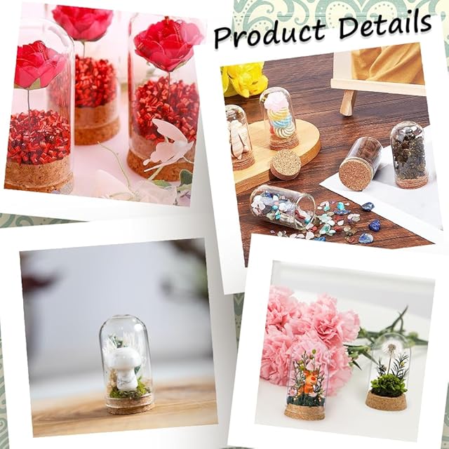 幅広い用途: クローシュベルジャーは店舗のドライフラワーに使用できます。砂, ビーズ, キャンディーなど. クローシュのベルジャーは、吊り下げ飾りの作成にも使用できます。中にフィラーを入れる, 接着剤を使用してクローシュディスプレイドームを密閉します, アイピンをコルクにねじ込むと、吊り下げ飾りが作れます。