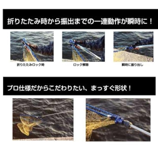 ●折りたたんだタモの網が風などでバタつくとそれがストレスに。それでも釣行時はやはりタモを折りたたんでいる時が多いもの。本製品は折りたたみと同時に完全ロックされ、ストレスなく釣りを楽しめます。