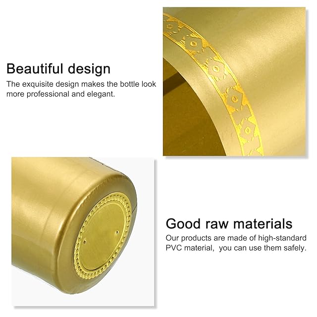 PATIKIL PVCワインボトル用 ヒートシュリンクキャップ 100個入り 33x45mm ワインシュリンクラップシールスリーブキャップ ワインセラーや家庭 キッチン用 ゴー ルドトーン フラワーパターン