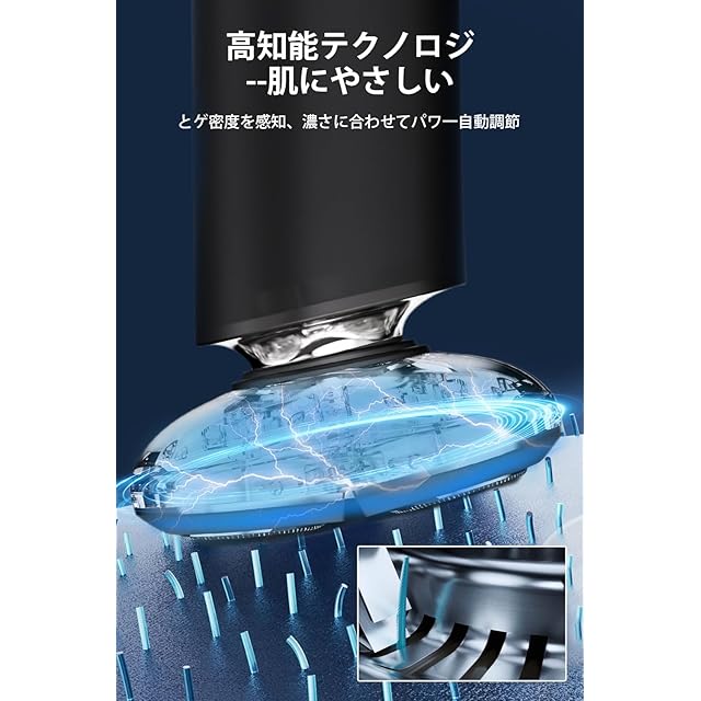 【3D回転式ヘッド&10000rpmのモーター】本シェーバーは3D回転式ヘッドが搭載して、三つの独立浮動刃が自在に動き、顔、顎、首の輪郭の曲面や小さな起伏を隙間なく密着することで効率よく剃り切り、様々な向きに生えるひげを根元から捕らえます。ヒゲの密度を感知機能があるので、自動的にパワーを調節し、ヒゲが濃い部分でも最適な速度をキープし、ワンストロークで深剃りを実現します。10000rpmのモーターがパワフルなシェービングを実現します。