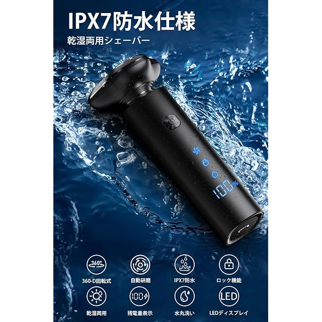 商品名:【2025新登場】シェーバー メンズ 髭剃り 電動 360°回転式 LEDディスプレイ IPX7防水 お風呂 乾湿両用 長持ちバッテリー 軽量・低騒音 残量表示 ロック機能 type-C急速充電 携帯便利 男性用シェーバー 出張/旅行/車内常備/プレゼント 日本語取扱説明書付 BS8012-06