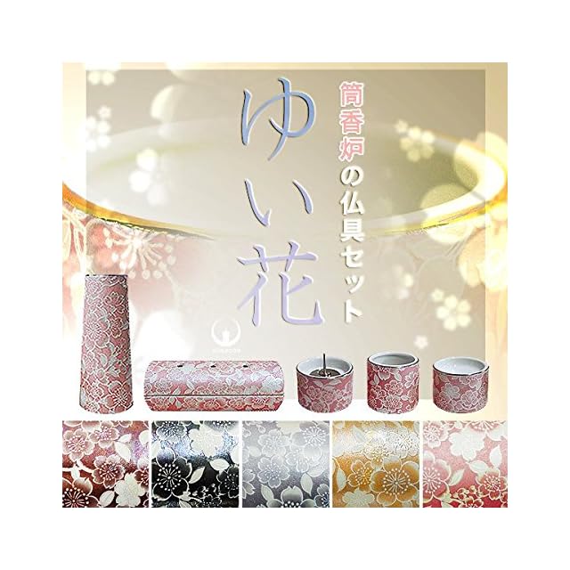 陶器製 モダン仏具5点セット『ゆい花』 (横置き筒型香炉) シャンパンゴールド (j1272-1-4)