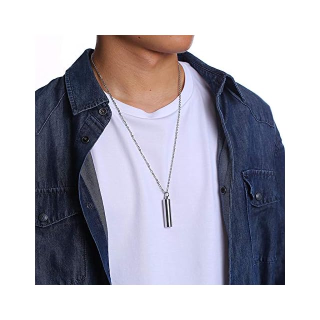 AIKS ネックレス メンズ は、シンプルでスタイリッシュなロングデザインが特徴のアクセサリーです。シルバーの円柱型ペンダント(直径10mm、高さ41mm)は内部が開閉でき、大切な遺骨やメモリアルアイテムを収納可能。ステンレス製で金属アレルギー対応、さらに鏡面加工により輝きが長く続きます。チェーンは60cmと余裕のあるロングタイプで、カジュアルからフォーマルまで幅広いスタイルにマッチ。普段使いはもちろん、バレンタインデーやクリスマスなど大切な人へのプレゼントにも適しています。大切な記憶を胸元に寄せ、永遠の絆を感じられる特別なネックレスです。