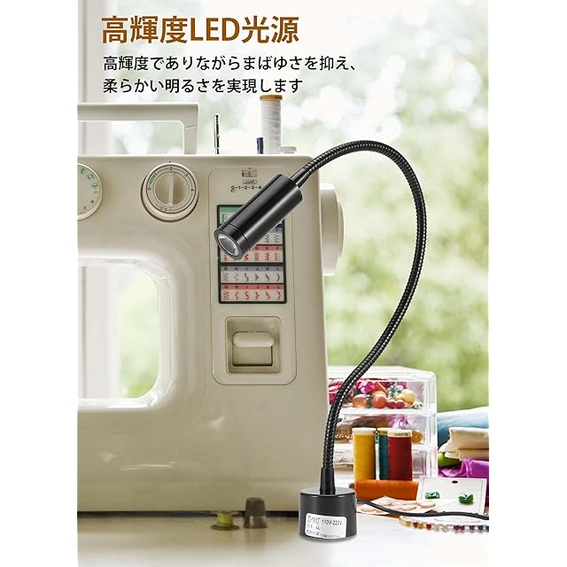 ミシンライト 縫製LEDライト ミシンLEDライト LEDデスクライト 縫製LEDランプ ミシン照明 白色光 360°調節可能 磁石ベース マグネット付き 縫製用 仕事用 作業用 夜間作業など