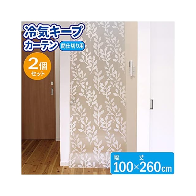 商品名:ワイズ 冷気キープカーテン レギュラー 100×260cm ×2個セット SX-080 | 暑さ対策 エアコン 冷気 逃さない 冷暖房効率 UP 夏涼しく 冬暖かく 夏 冬 兼用 断熱 間仕切り カーテン 省エネ フリーカット リビング 階段 廊下 吹き抜け