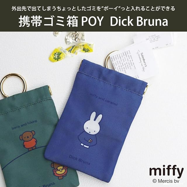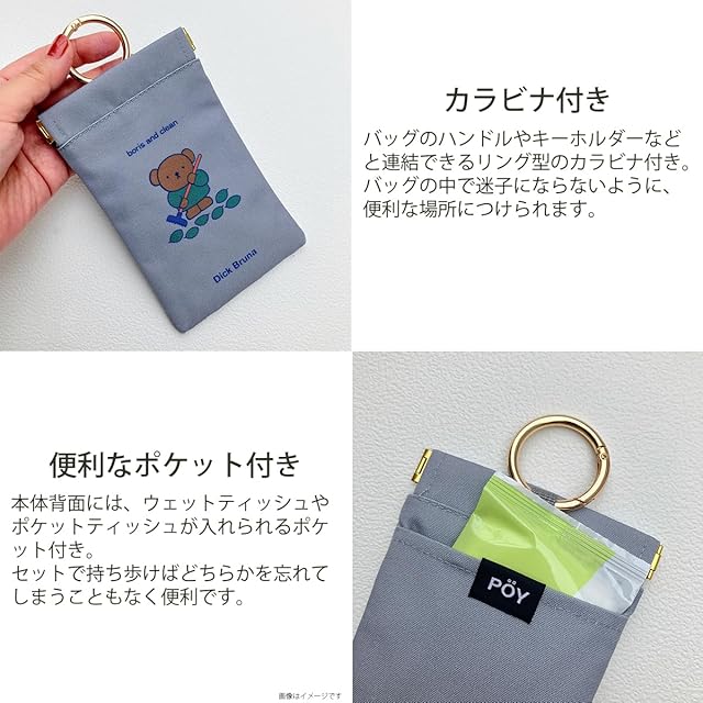 ヘミングス ゴミ箱ポーチ 携帯ゴミ箱 POY ポーイ Dick Bruna boris&CLEAN カラビナ&側面ポケット付 グレー 約10.5×16cm 4495505