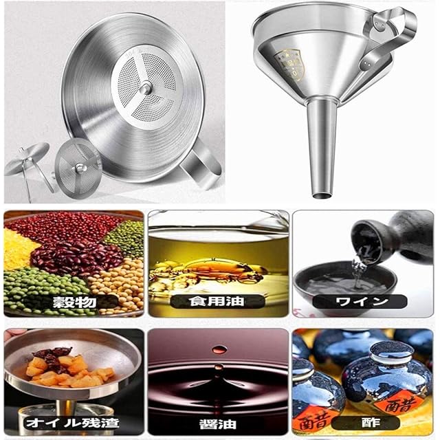【幅広い用途】さまざまなシリアル、食用油、ワイン、醤油、酢、フィルターオイルの残渣を調剤します。さまざまな容器やボトルから液体や粉末を注いで移すのに最適です。