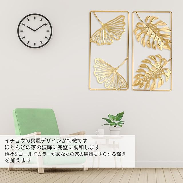 【芸術的感覚】この壁掛け装飾は、金色のイチョウの葉のデザインが特徴で、どんな室内空間にも素晴らしい芸術的感覚をもたらします。そのユニークかつエレガントなデザインが、ただの壁を美術館のような空間に変えてくれます。