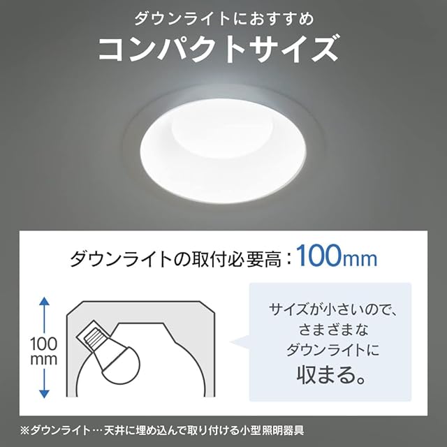 断熱材施工器具:○ ●密閉形器具:○ ※断熱材施工器具や密閉形器具の種類によって、寸法が合わない、熱がこもるなどの要因により、使用できなかったり、寿命が短くなる場合があります。 ※調光(明るさを調整できる)機能のついた器具には使用できません。: