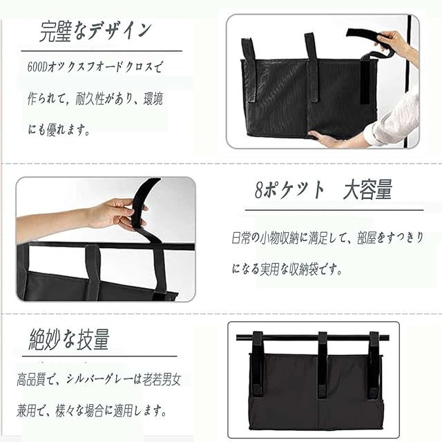 商品名:Longbest ベッドサイドポケット 吊り下げ収納袋 ウォールポケット厚手オックスフォードクロス製 寝室ベッド収納 大容量収納ポケット小物入れ 8ポケット 病院ベッド乳母車 ベビーベッド 椅子 ベッド車の座席兼用 (ブラック)