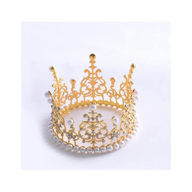 商品名:YOVEKAT 女性の女の子のレトロな男は、誕生日の結婚式アクセサリーのための真珠の王冠の花嫁ティアラケーキトッパー装飾