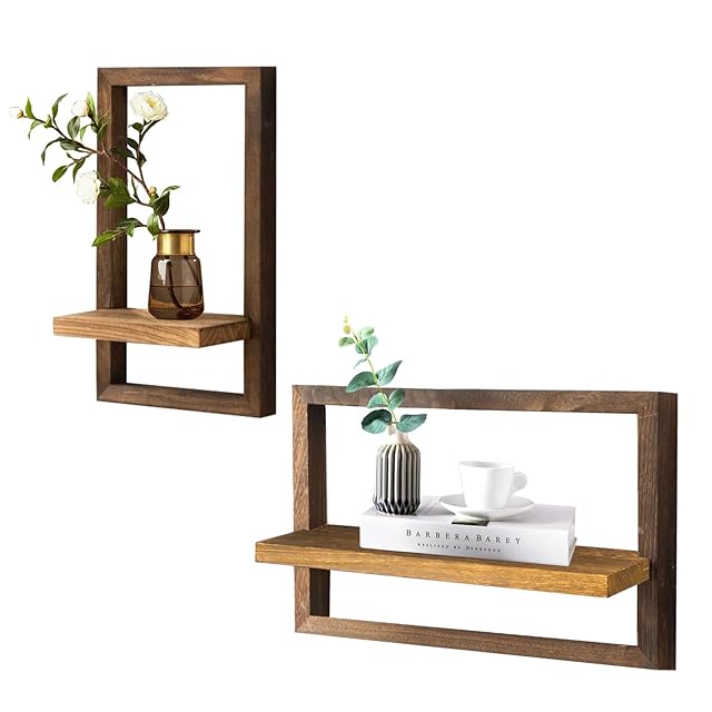 ウォールシェルフ 壁掛け棚 2点セット 木製 飾り棚 壁掛けラックおしゃれ シンプル 壁つけ棚 取り付け簡単 ウォールラック 洗面所/キッチン/トイレ/玄関 収納棚 生活雑貨 (ブラウン)