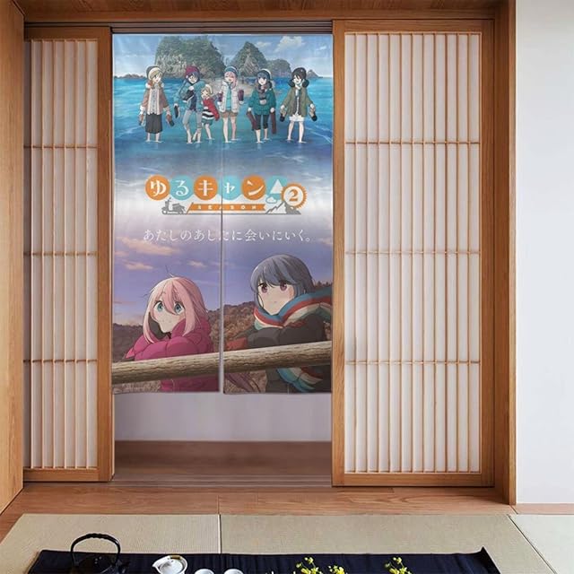 ゆるキャン△ のれん暖簾 四季兼用 簡単取り付け 玄関目隠し 寝室 浴室用 湯 リビング階段 お部屋の間仕切りドアカーテン 86*143cm