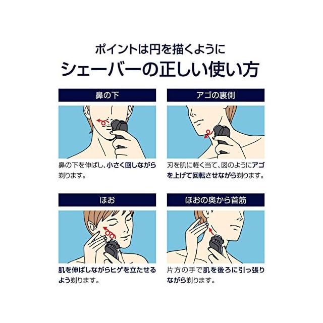 5方向に可動するヘッドが顔の凹凸に密着して素早く深剃り