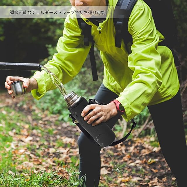 商品名:水筒ケース 水筒カバー ウォーターボトルカバー ネオプレン素材 水筒ケース 肩掛け 保冷 保温 調節可能 携帯式 便利 1000ML対応 (ブラック)