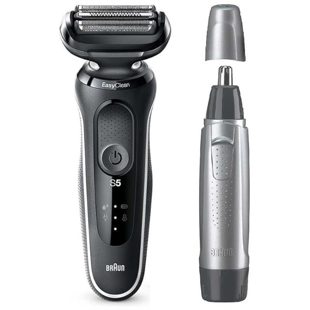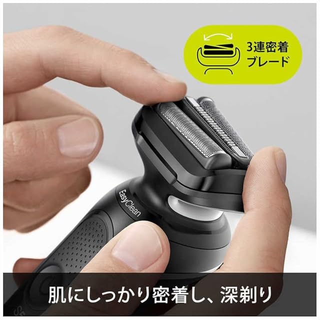 ●クイック洗浄システム 網刃を外すことなく、簡単かつ清潔に毎日の洗浄ができます ●深剃りをよりシンプルに 新シリーズ5は、肌の凸凹にしっかり密着する、3連密着ブレードを搭載しています ●手に馴染む、ハンドルデザイン 新しい人間工学デザインで、シンプルで低負担なシェービングが可能です ●パワフルなリチウムイオン電池 1回のフル充電で、約50分連続使用可能。また5分の急速充電機能で、1回のシェービングができます ●100%g防水設計 フォームやジェルなども使用でき、お風呂でも洗面台でも心地よいシェービングが可能です ●シンプルなヘッド切り替えシステム ワンクリックで取り外して、毎日の洗浄や替刃交換が簡単に(装着時、しっかり装着されているかご確認ください) ●コンパクトで軽い、操作しやすい、水洗い可能なエチケットカッター ステンレススチールでできた刃により、毛を清潔に、緻密にカットします。 毛をひっぱたり、削り取ったりすることなく、簡単にカットすることができます。
