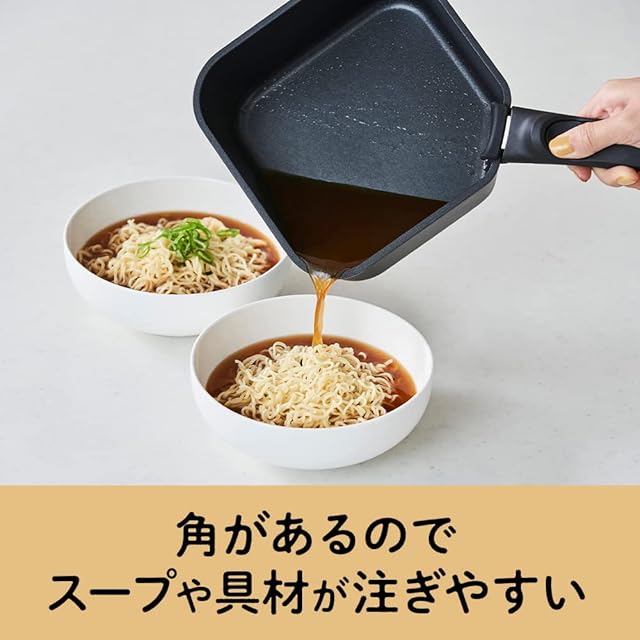端が角になっているので、スープや具材が注ぎやすい形状です。