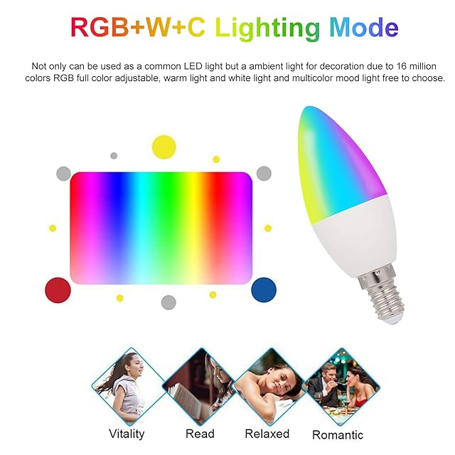 商品名:スマート電球、WiFi スマート電球 RGB+W+C LED キャンドル電球 5W E14 調光可能なライト電話アプリ SmartLife/Tuya リモコン Alexa Google Home Tmall Elf と互換性あり 音声制御用、1 パック ホワイト