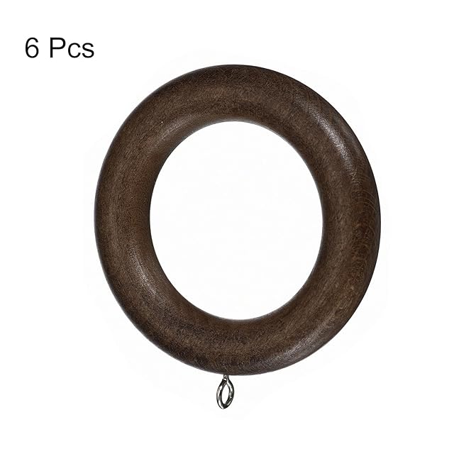 uxcell 6個 木製カーテンドレープリング カーテンドレープロッド用の2.75"の木製リングフック ウォールナット