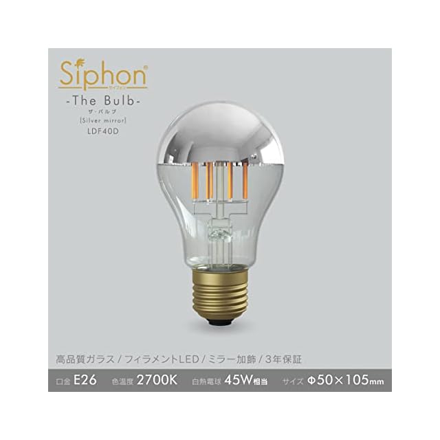 商品名:【3年 フィラメントLED電球「Siphon」The Bulb Silver mirror LDF40D】色温度:2700K E26 電球色 シルバー ガラス レトロ アンティーク インダストリアル ブルックリン お洒落 照明 間接照明 ランプ