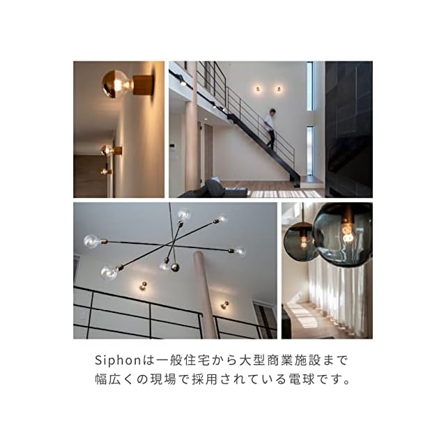 ■特徴<br/> ハーフミラーやTミラーとよばれている、電球のTOPが加飾されている電球です。<br/> 加飾されている部分は光を通さず、 直接見ても眩しくなく優しく光が拡散します。<br/><br/> メーカー: BeatSonic / ビートソニック <br/> シリーズ名: OnlyOne Siphon LED電球 MIRROR<br/><br/> 全光束(lm):600 (45W相当)<br/> 定格寿命(h):15000<br/> 入力電流(A):0.08<br/> 定格電圧(V):100(50/60Hz)<br/> 定格消費電力(W):6.0<br/> 色温度(電球色)(K):2700<br/> 口金:E26<br/> 寸法(mm):φ60x105<br/> 質量(g):40<br/> 演色性(Ra):88<br/><br/> 【以下の器具には使用しないでください。】<br/> ・断熱材施工器具<br/> ・HIDランプ器具(水銀灯、ナトリウムランプ、メタルハライドランプなど)<br/> ・非常用照明器具<br/> ・誘導灯器具<br/> ・直流電源<br/> ※このほか、使用器具の種類によって寸法的、熱的、その他の状況により使用できない場合があります。<br/><br/> 【ご使用上の注意】<br/> ・雷サージ対策ブレーカー(バリスタ付ブレーカー)を通った配線にてご使用ください。(雷の高電圧サージによる短寿命の原因)<br/> ・水洗いや分解、改造は絶対にしないでください。LED素子などは交換できません。ラジオやテレビなどの音響および映像機器の近くで点灯すると、雑音が入ることがあります。(雑音が入る時は、ランプから1m以上離してご使用ください。)<br/> ・赤外線リモコンを採用した機器(テレビやエアコンなど)の近くで点灯すると、リモコンが誤作動することがあります。<br/> ・外観などの仕様は、予告なく変更することがあります。<br/> ・推奨使用周囲温度は5-40℃です。<br/> ・ホタルスイッチ機能のついた器具、空気容量が2リットル未満の密閉器具には使用しないでください。<br/><br/> 【調光について】<br/> 低負荷容量インターフェースを必要とせず調光器単体でのスムーズな調光を実現することが可能となりました。<br/> ※製品の個体差によって点灯時のタイミングにズレが生じる場合がございます。<br/> ※動作が安定しない場合、調光のボリュームを変更して動作に支障のない範囲でご使用ください。<br/> ※0-100%の調光をするものではありません。 <br/><br/>