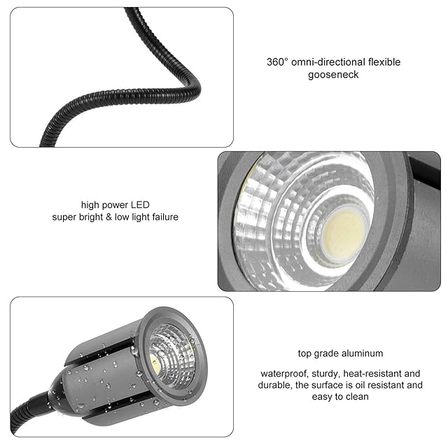 <br> 機能 <br> 1 12Wの高出力LED光源高輝度長期間の使用で目を疲れさせません<br> 2 360度の柔軟なグースネックによりランプの角度を自由に調整して光の焦点を正確に合わせることができます<br> 3機械加工自動車部品のメンテナンス工場の工作機械ワークショップのCNC機械読み取り学習などで広く使用されています<br> 4ワークランプは高品質のアルミニウムを採用し耐久性防水性耐油性清掃が容易です<br> 5磁気ベースを搭載し金属面に取り付けやすく吸着力が強く転倒しにくいです <br> <br> <br> 仕様 <br> 状態100新品<br> アイテムタイプワークランプ<br> 材質アルミニウム <br> 色グレー+黒<br> プラグUSプラグ<br> 入力電圧110-220V <br><br> LED電力12W <br><br> 用途照明器具<br> 色温度白色光<br> 光源LED <br><br> スイッチキースイッチ<br> 防水定格IP44 <br><br> 重量約404g / 14.3oz <br><br> サイズ<br> ランプ径約5cm / 2.0in <br><br> ベース直径約 4.1cm / 1.6in <br><br> ホースの長さ約 35cm / 13.8in <br><br> 線の長さ約 130cm / 51.2in <br><br> アプリケーションシナリオ工作機械ワークショップ/自動車部品のメンテナンス/美容とマニキュア/読書と学習など <br> <br> <br> <br> パッケージリスト <br>1xワークランプ <br> <br> <br> 注 <br> 1手動測定による01インチの誤差を許容してくださいご理解のほどよろしくお願いいたします <br> 2モニターは同じように調整されていません写真に表示されているアイテムの色は実際のオブジェクトとわずかに異なる場合があります本物を標準でお持ちください <br> <br> <br> <br>