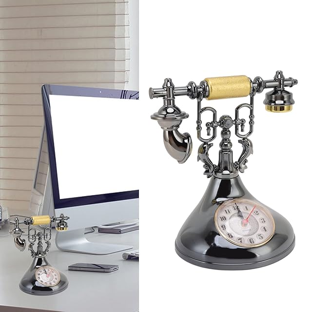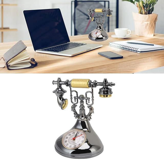 レトロな電話時計、 アンティークの昔ながらの電話のデザインの置時計 ベッドサイドの時計の装飾、 電池式 クリエイティブなヨーロピアンスタイルの家の装飾時計 ホーム・カフェ・オフィス用 (YF020-1)