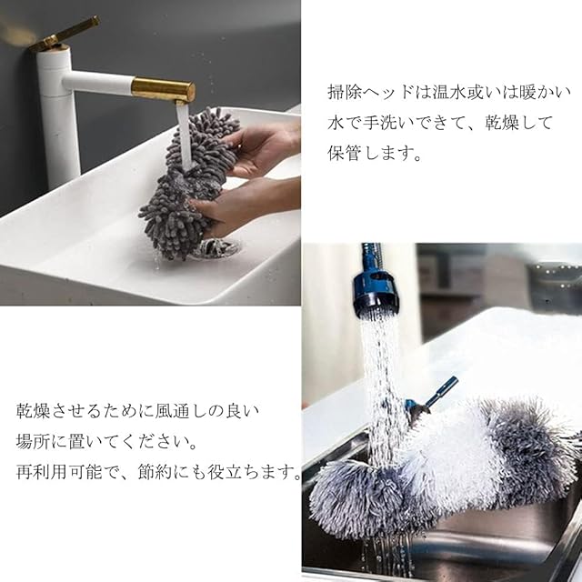 ✿【手洗い可能&取付け簡単】三つのクリーニングヘッドは、ウェット&ドライの両方で使用できます、触れられない場所に触れることができます、高くても角も掃除できます。使用後はヘッドを取り外し、クリーニングヘッドを温水で洗い、乾燥した換気の良い場所に吊るして、次の使用のためにふわふわにします。✖洗濯機での洗濯・脱水・乾燥はしないでください。ヘッドとハンドル2段接続すれば、使えます。
