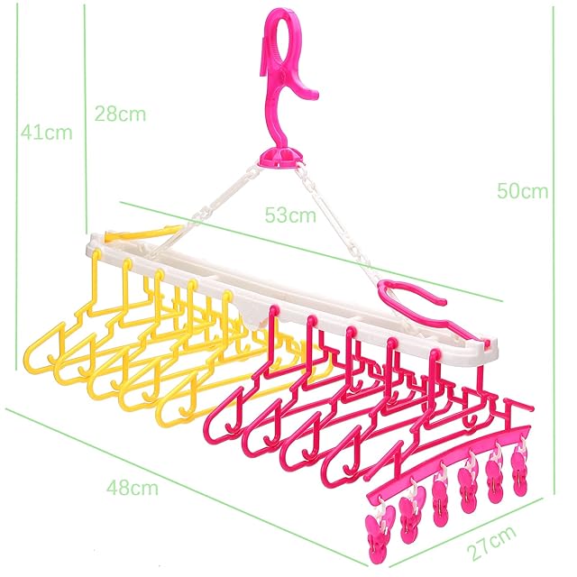 shangjin キッズ10連ハンガー 子供 洗濯ハンガーラック 取り外し 折り畳み フリーグリップ 洗濯物ハンガー 洗濯干し レッド&イェロー