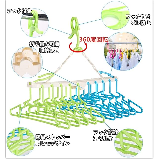 【セット内容】6クリップ付き洗濯 ハンガー10個。室内からの出し入れが楽な、スリム内折れ式です。風が吹いても竿から落ちない、グリップ式竿掛けです。