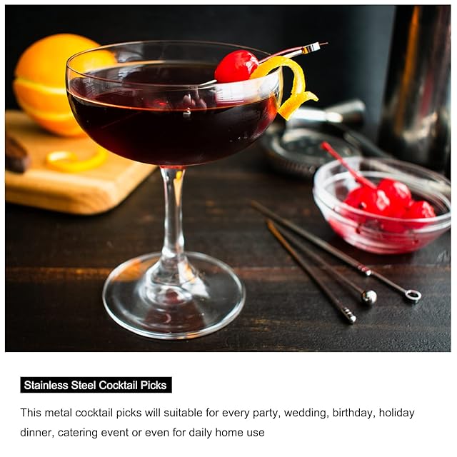 よいサイズのカクテルピック-11 cmのカクテルピックは、あらゆる種類のカクテルグラスに完全にフィットし、分裂せずに食べ物を簡単に突き刺します。長い長さは、伝統的な竹のワインスティックよりも創造的なスペースを提供します。