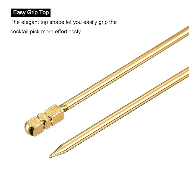 uxcell メタルカクテルピック カクテルのつまようじ 8個入り 再利用可能 ステンレススチール 立方体形状 飲み物 前菜 果物用 ゴールド