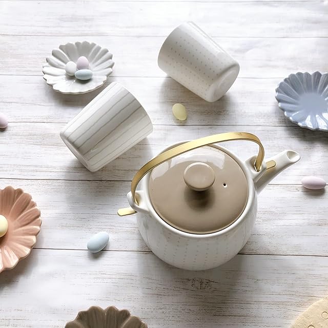 [Dolce duo] 急須セット コップ付き 急須 湯のみ カップ 茶こし付 ティーセット ギフトセット 陶器 誕生日プレゼント PD-1501