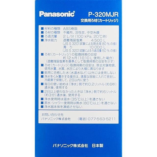 パナソニック 浄水器カートリッジ 蛇口直結型用 1個 P-320MJR
