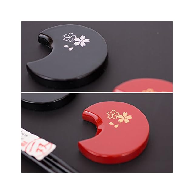 箸の長さ:黒22.5.cm 赤21.5cm 持ち手の形状 箸置きのサイズ:直径 約4.4cm:四角 先の形:丸
