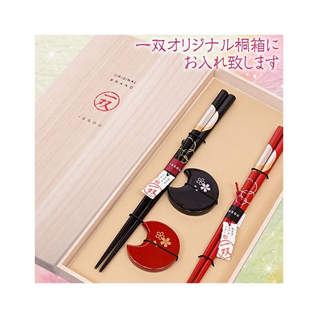 商品名:輪島塗 一双 宵待月・夫婦箸と箸置き-華桜セット 桐箱入り