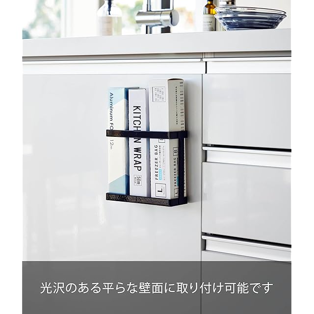 商品名:山崎実業(Yamazaki) フィルムフック ラップホルダー ブラック 本体:約W17.5×D6×H15cm(フィルムフック含まず) タワー tower ラップ収納 ラップケース キッチン収納 浮かせる収納 2164