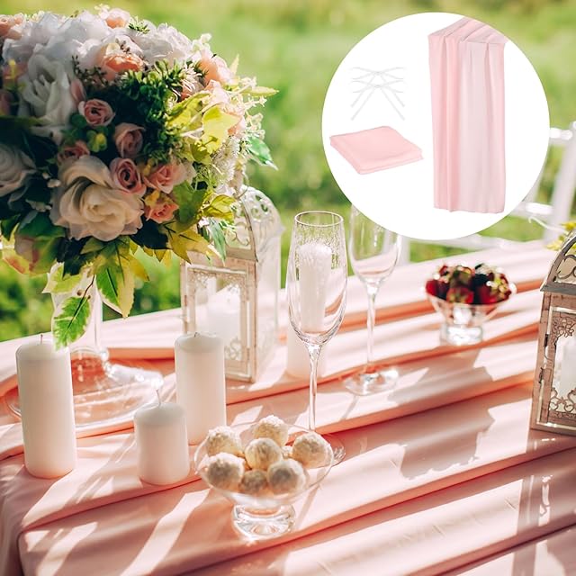 uxcell シフォンテーブルランナー 3 M 72 x 305 cm 素朴なガーゼテーブルクロス シアーウェディングテーブルランナー 結婚式 ブライダル パーティー テーブル装飾用 ピンク