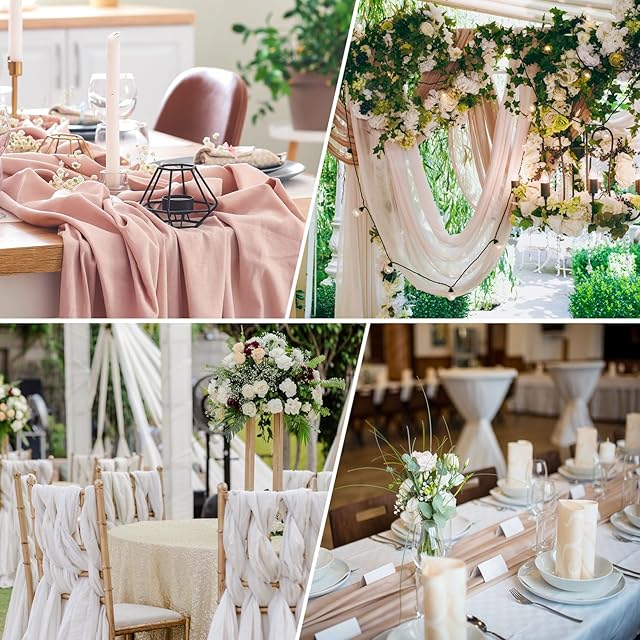 [幅広い用途] - このチーズクロステーブルランナーは、結婚式の装飾、結婚式のテーブルと椅子の装飾、結婚式のアーチ、ディナーテーブル、ホリデーパーティー、屋外ピクニックなどに最適です。結婚式、イースター、感謝祭、クリスマス、バレンタインデーなどに最適です。ご家庭のテーブル、棚、キャビネット、テレビ台、ソファ、その他の家具にも適しています。