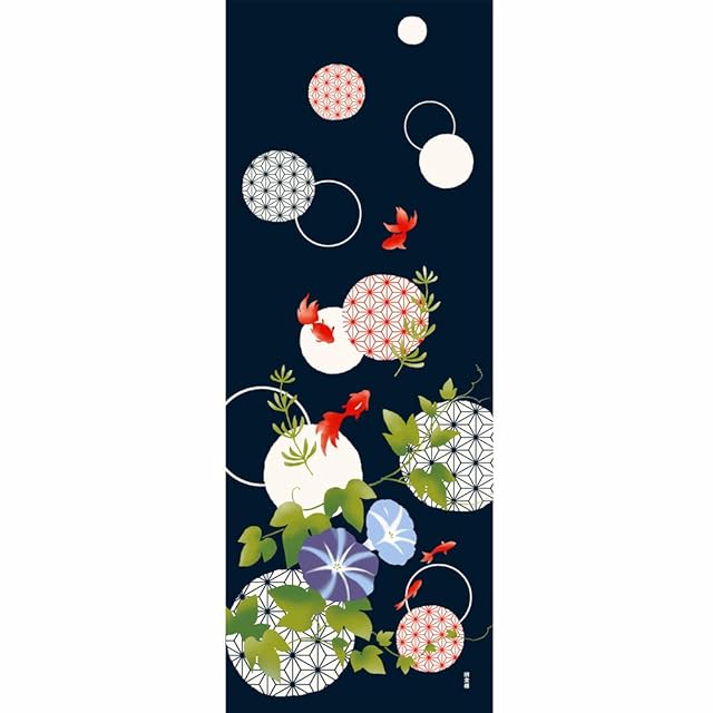 【麻の葉金魚】<br>麻の葉の水玉にすいすい泳ぐ金魚と朝顔。<br><br>【ブランド】<br> 横浜のテキスタイルブランド「濱文様」は、<br> 横浜伝統の型染め手法である捺染(なっせん)で染め上げた色鮮やかなてぬぐいを中心に、<br> 数多くの和雑貨を製造、販売しています。<br> <br> 遊び心のある個性的なデザインが特徴で、<br> 四季折々の風情を感じさせるオリジナルデザインを発信し続けています。<br> <br> 【製品情報】<br> 一幅の絵としてお飾りいただける絵てぬぐいは、<br> てぬぐいとしてはもちろん、インテリアとしても好評です。<br> 横浜の粋と遊び心をもつ、濱文様らしさに溢れたてぬぐい絵を是非お楽しみください。<br> 贈り物にもぴったりです。<br> <br> ◆サイズ:34cm×90cm<br> ◆素材:綿100%
