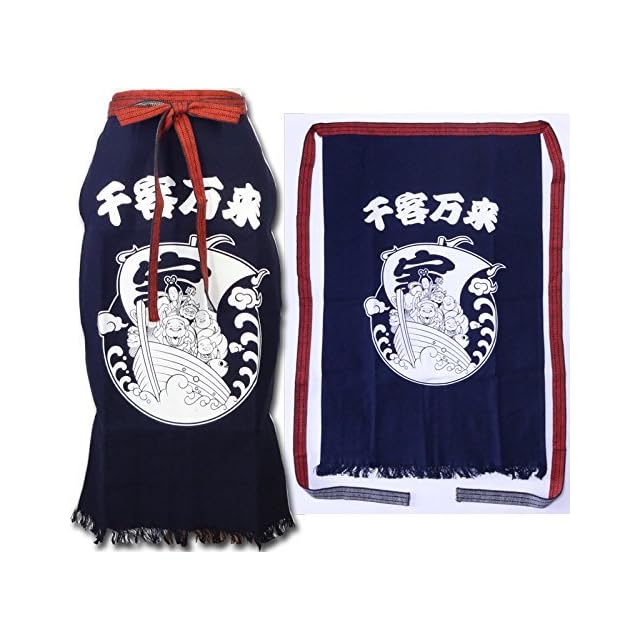 商品名:千客万来 宝船 七福神 八百屋 酒屋 紺色 帆前掛け