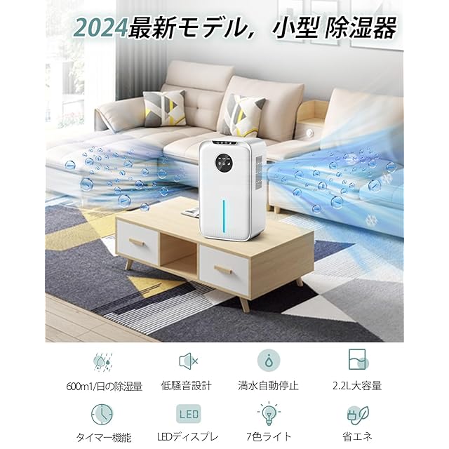 除湿機 大容量 2.2L 除湿器 ペルチェ式 じょしつき 除湿量0.6L/日 除湿器 強力除湿 湿気取り 部屋干し 湿気対策 梅雨対策 衣類乾燥 自動停止 静音 省エネ 節電 小型 コンパクト 狭所向け 下駄箱/クローゼット/洗面台/脱衣所/トイレなどに適用